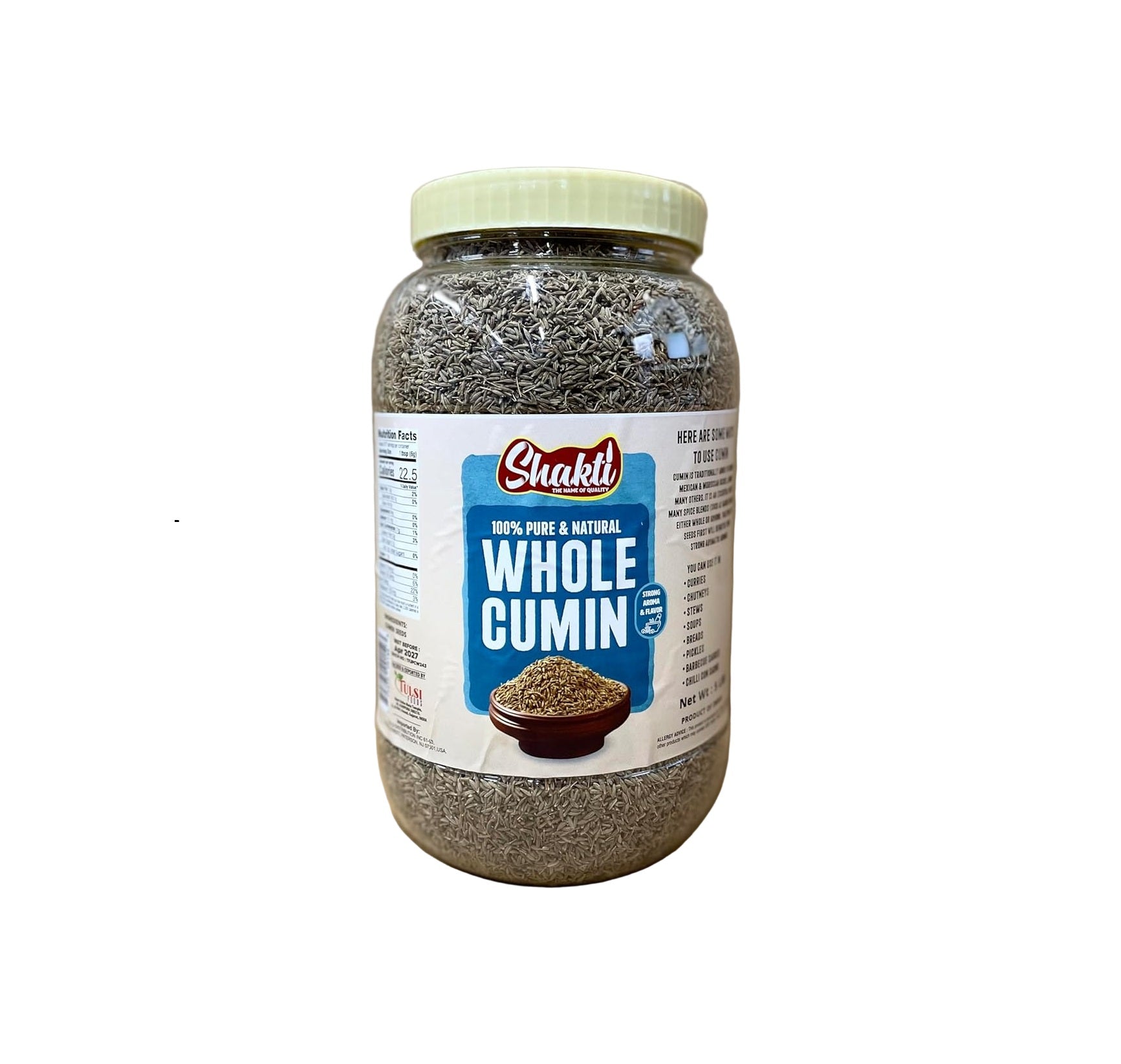 Experience rich aroma and bold, authentic flavor with Shakti Whole Cumin Seeds. Sourced from quality farms and packed fresh, these 100% pure and natural cumin seeds are a staple for everyday cooking. Ideal for restaurants, home kitchens, and bulk spice storage, this large 5 lb provides excellent value for high-volume use. Perfect for seasoning, tempering, marinades, and enhancing dishes with warm, earthy spice.